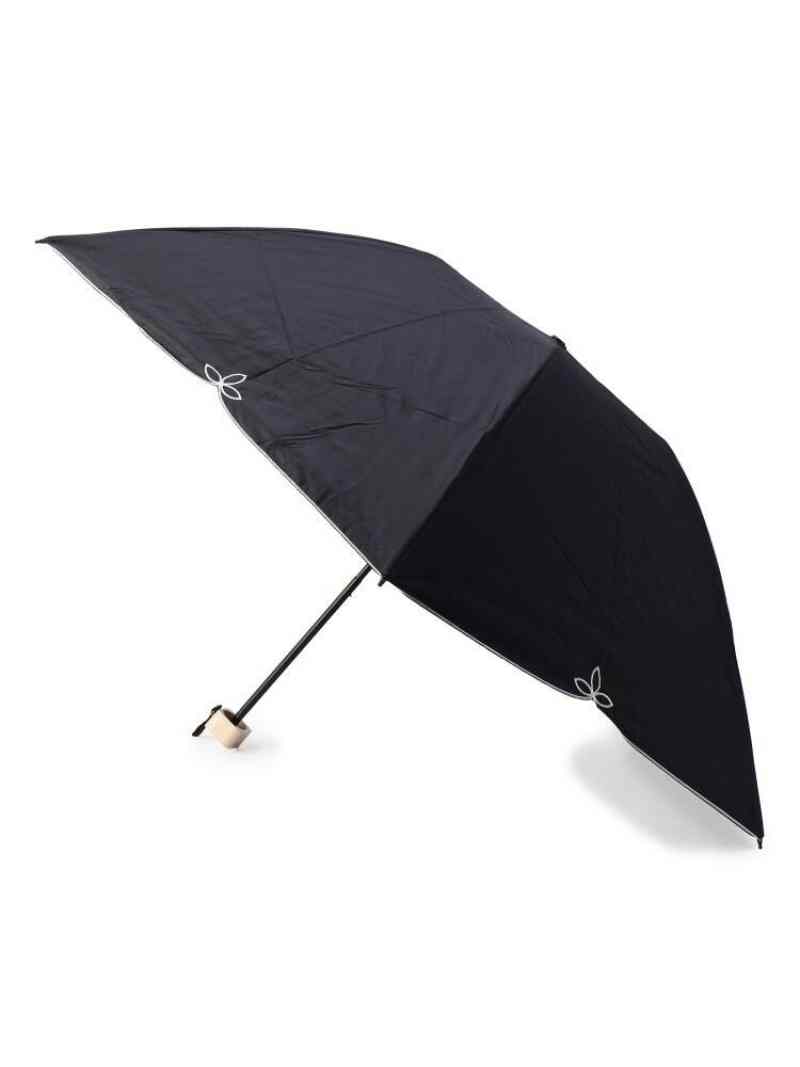 grove Wpc. 遮光リーフパイピング刺しゅう折り畳み傘(晴雨兼用) グローブ ファッショングッズ 日傘/折りたたみ傘 ブラック ベージュ